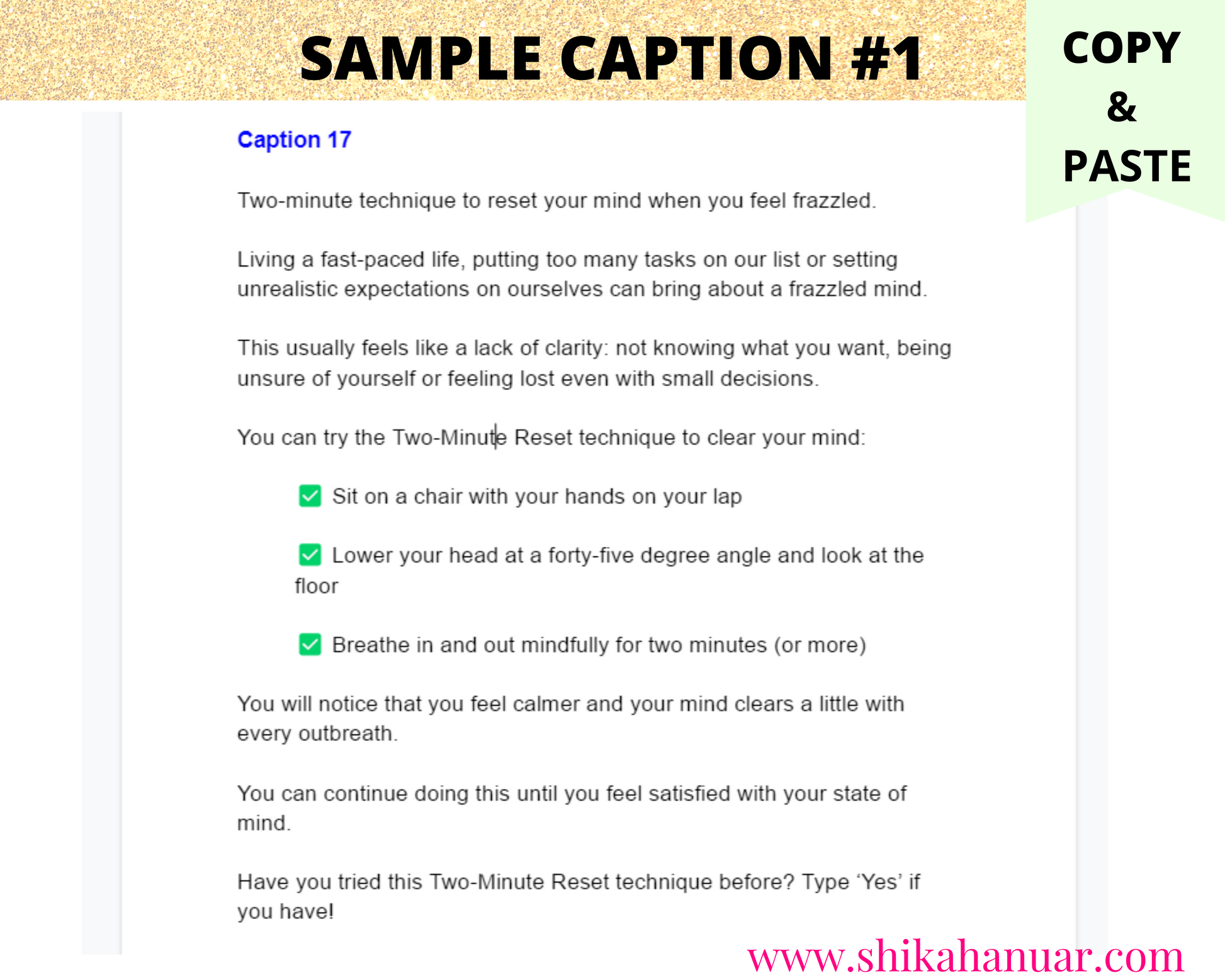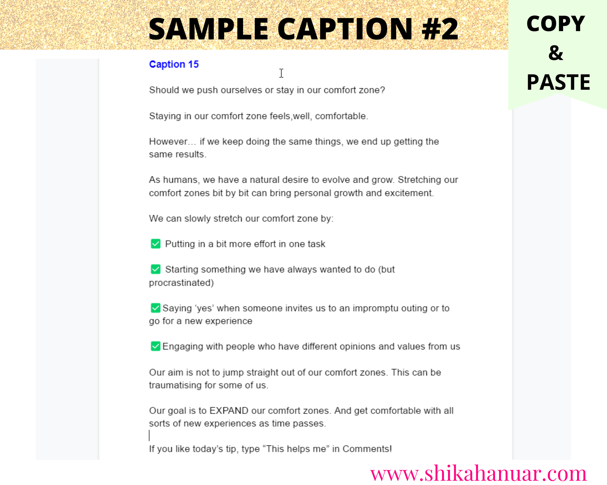 My captions are already affordable + give a high return of investment, so please don’t share them with other coaches / business owners! They can get their own copy from my shop 💛