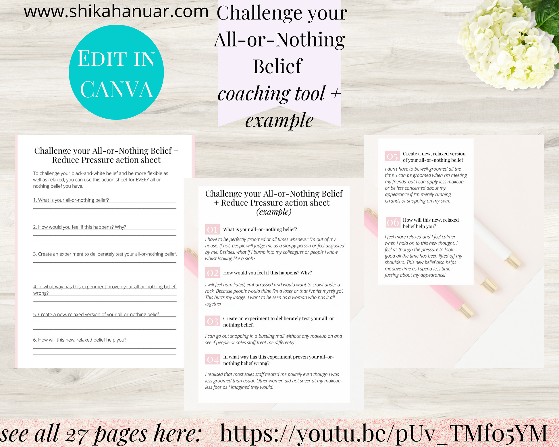 - 1 page: How to Challenge All-or-Nothing Beliefs and reduce everyday pressure coaching tool (blank coaching tool for your clients to complete)