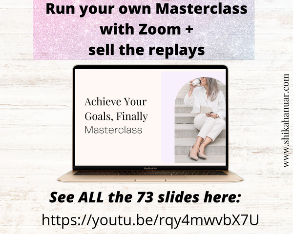 - Pre-record this masterclass (if you are shy about teaching ‘live’ classes) and sell it!