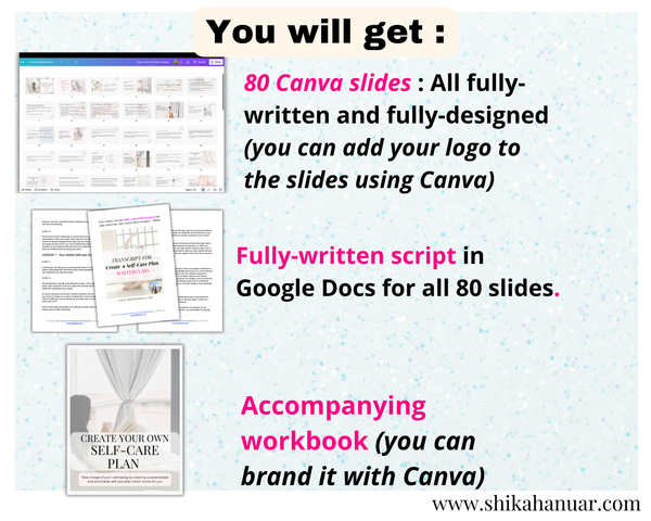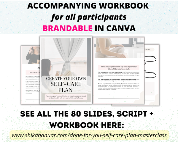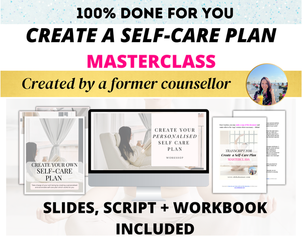 Done-for-you 'Create a Self-Care Plan' Masterclass, Script and Workbook (ready to launch and sell)