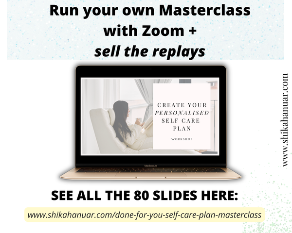 If you want to sell your own actionable ‘Create a Self-care Plan’ masterclass by today or tomorrow, but don’t have the time to write one from scratch, I’ve done the work for you!