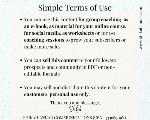 ⭐️My products are 100% written by me, backed by YEARS of counselling experience under my belt. Need proof? I run a registered business - Shikah Anuar Communications.