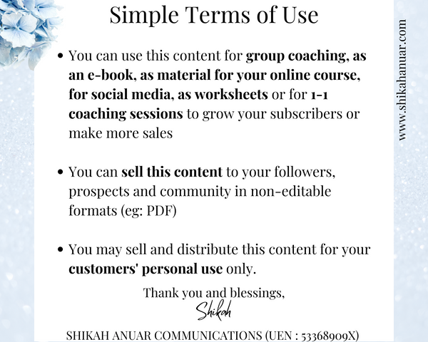 ⭐️My products are 100% written by me, backed by YEARS of counselling experience under my belt. Need proof? I run a registered business - Shikah Anuar Communications.