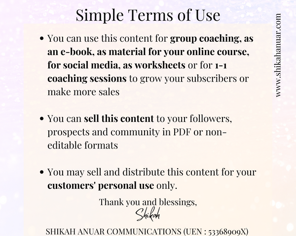My materials are already affordable + gives a high return of investment, so don’t share it with other coaches / business owners. They can get their own copy from my shop.