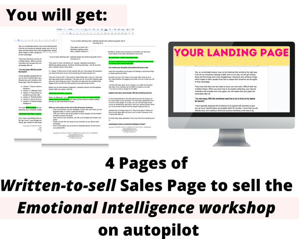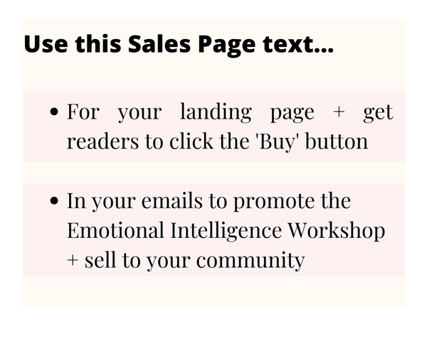 ✅A 100% sales-oriented sales page which you can use to promote + sell your done-for-you Emotional Intelligence workshop