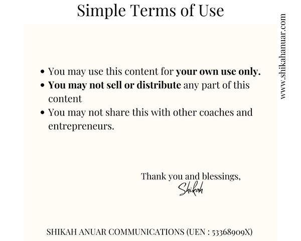 My materials are already affordable + gives a high return of investment, so please don’t share it with other coaches / business owners. They can get their own copy from my shop.