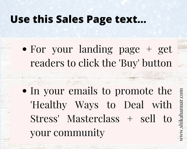 This sales page will help you sell this done-for-you Healthy Ways to Deal with Stress masterclass even as you sleep!