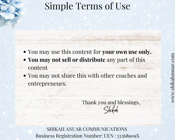 My materials are already affordable + gives a high return of investment, so please don’t share it with other coaches / business owners. They can get their own copy from my shop.