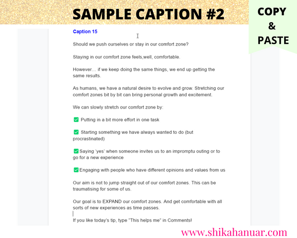 My captions are already affordable + give a high return of investment, so please don’t share them with other coaches / business owners! They can get their own copy from my shop 💛