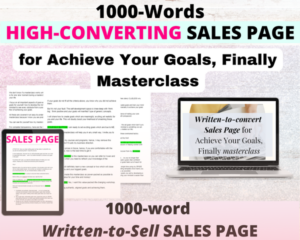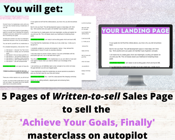 Want a written-to-convert sales page to sell your Achieve Your Goals, Finally masterclass on autopilot? I’ve got you.