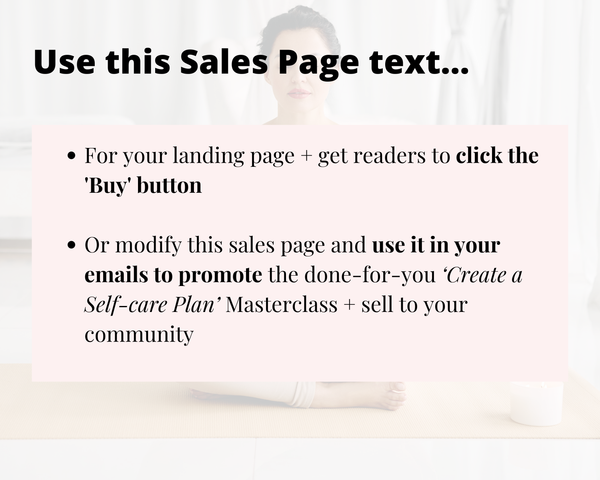 This sales page is specially written to help you sell and promote the done-for-you Create a Self-Care Plan masterclass.