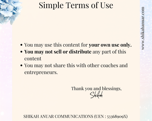 My materials are already affordable + gives a high return of investment, so please don’t share it with other coaches / business owners. They can get their own copy from my shop.