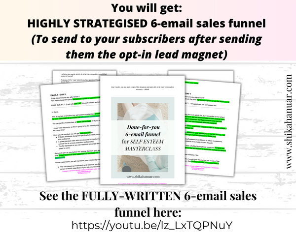 3. A 6-email persuasive funnel to nurture your subscribers to buy the masterclass after they’ve signed up for your mailing list!