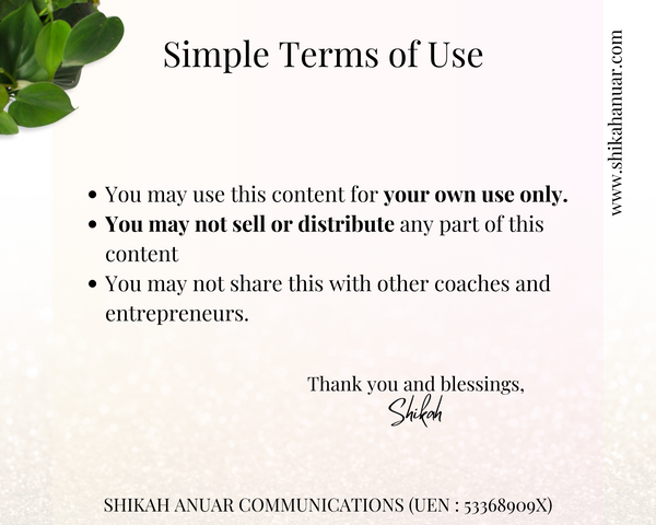 My materials are already affordable + gives a high return of investment, so please don’t share it with other coaches / business owners. They can get their own copy from my shop.