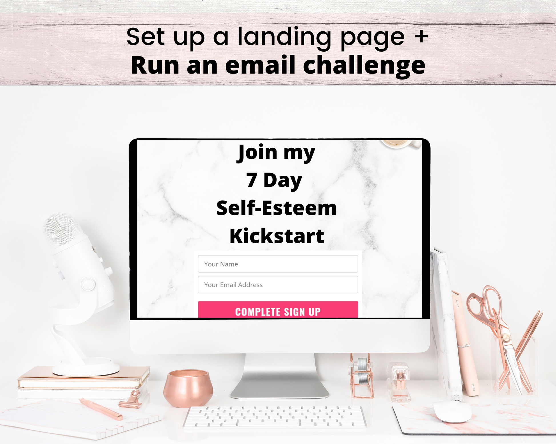 In 1 day, you can have a 7 Day Self Esteem Challenge up and running to get people rushing to be on your mailing list!
