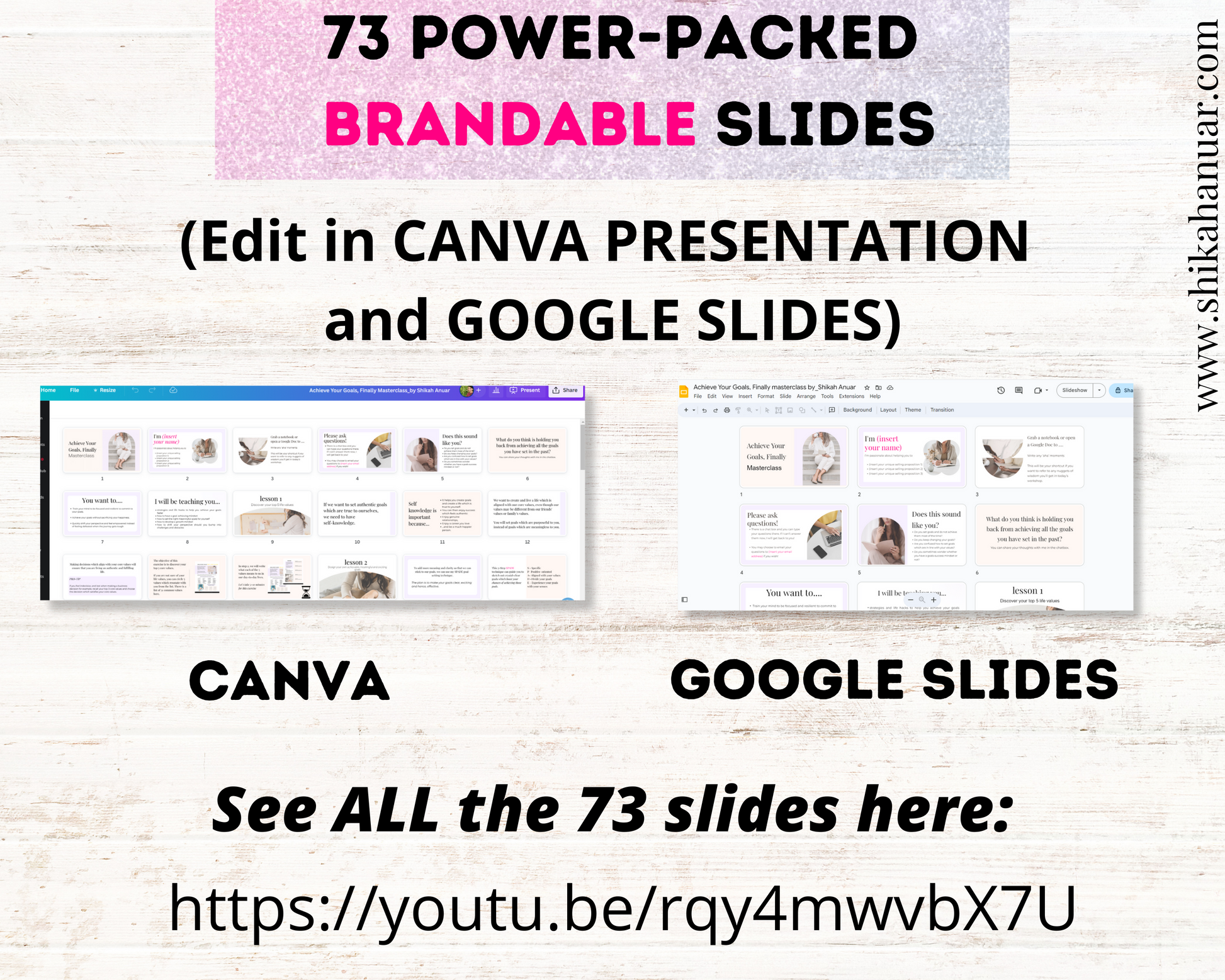 ✅ A power-packed presentation with 73 Canva slides AND Google slides (to cater to your preference)