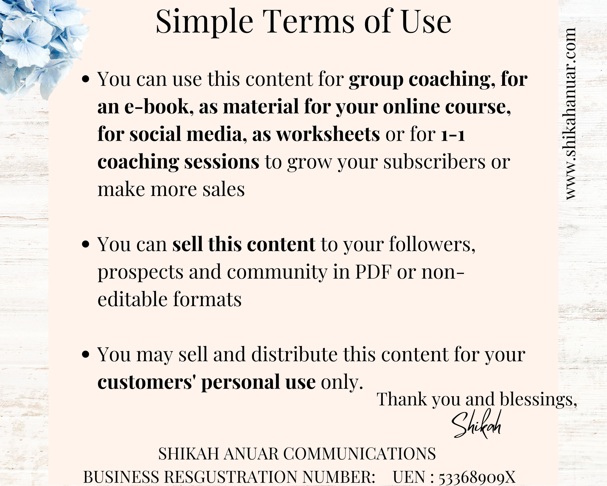 ⭐️My products are 100% written by me, backed by YEARS of counselling experience under my belt. Need proof? I run a registered business - Shikah Anuar Communications. And I have an active blog at shikahanuar.com for you to see my writing style. Gain your customers’ TRUST and offer Workbooks which TRULY transform their lives! ⭐️