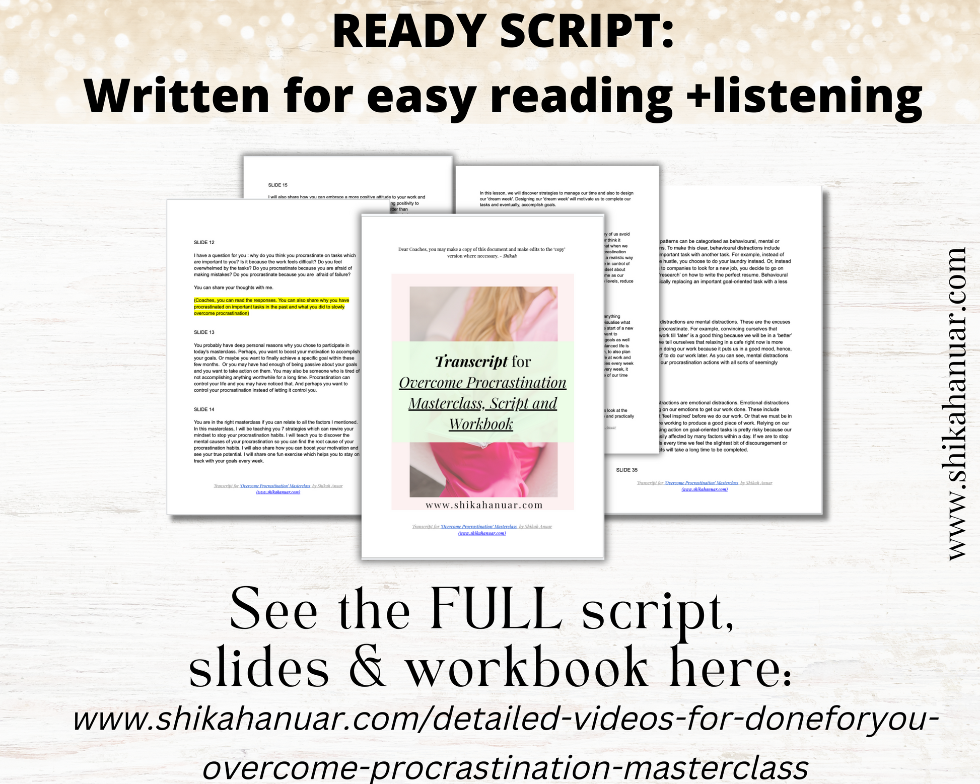 Done-for-you 'Overcome Procrastination' Masterclass, Script and Workbook
