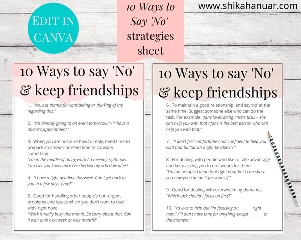✅2 Pages: ‘10 Ways to Say ‘No’ & Keep Friendships’ strategies sheet